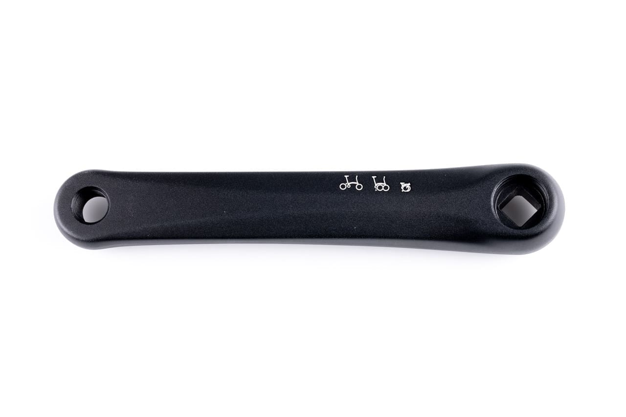 This replacement left-hand crank is compatible with Brompton “spider” cranksets introduced in 2013 and beyond, providing a perfect match in performance and style.